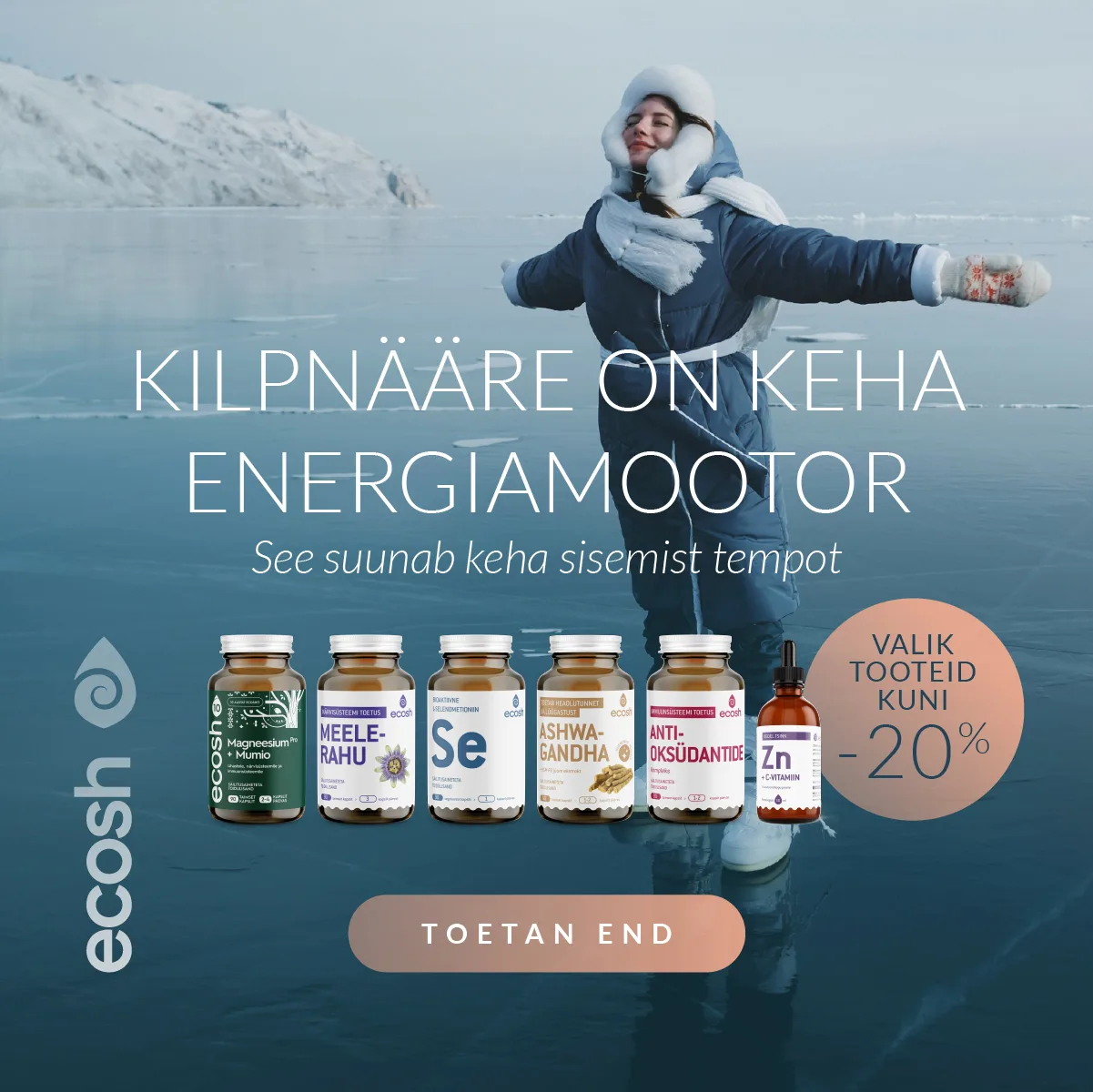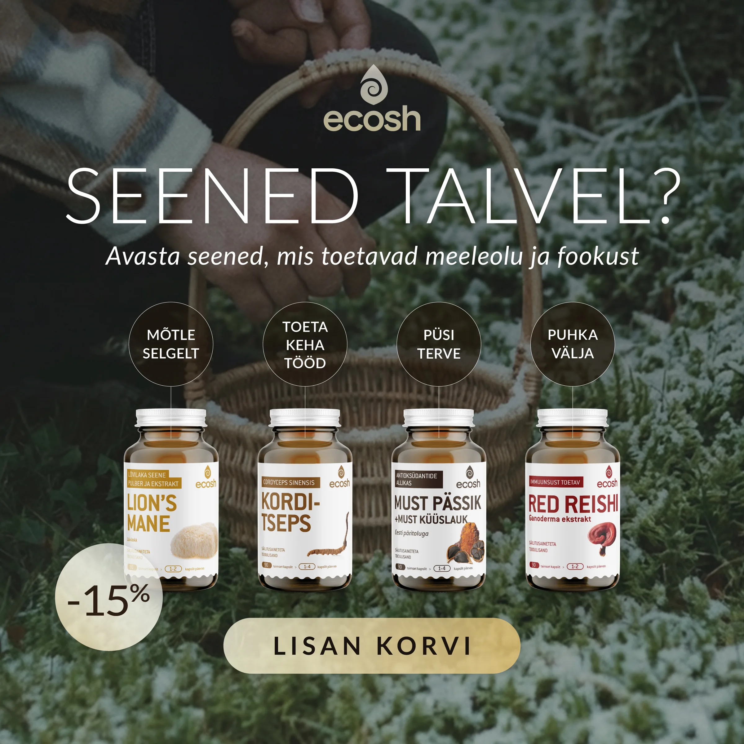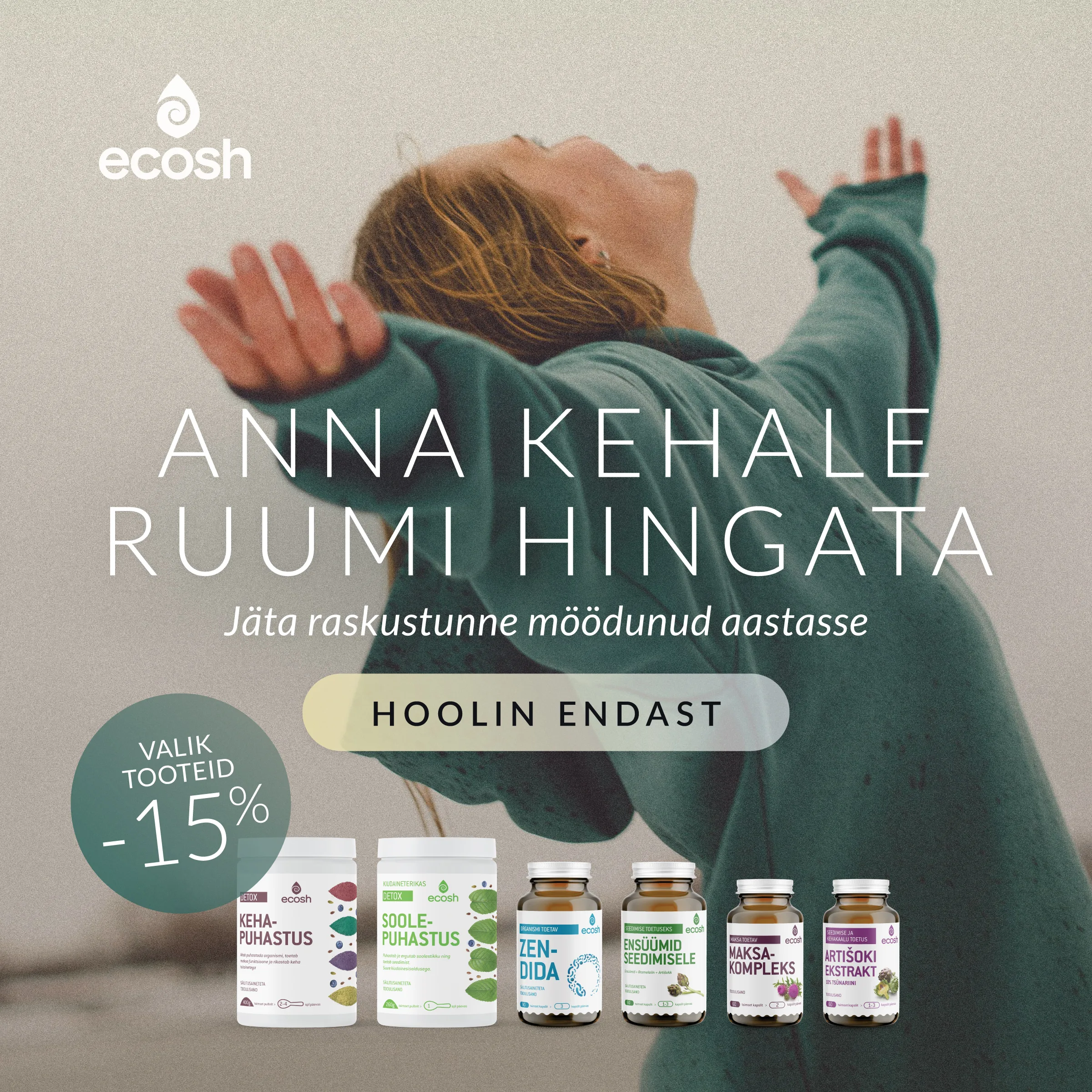 Liitu Ecoshi uudiskirjaga! Toeta oma tervist ja saa esimene tellimus 10% soodsamalt! Soovin liituda Ecoshi Boonusprogramm Ecoshi püsikliendina kogud igalt ostult 5% boonust oma kontole!Kasuta kogutud boonust e-poes maksmisel. Loo konto Logi sisse Osta 100 € eest ja säästa -10% *Kupong ei kehti toodetele millel on juba allahindlus! Sooduskood immuunsus10 E-poodi Osta 150 € eest ja säästa -15% *Kupong ei kehti toodetele millel on juba allahindlus! Sooduskood immuunsus15 E-poodi