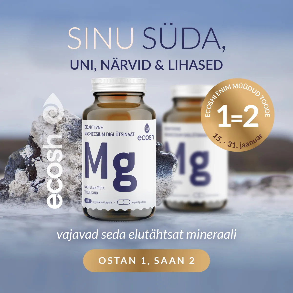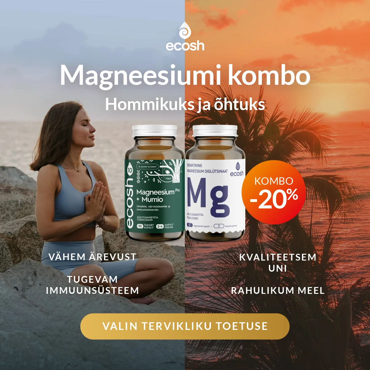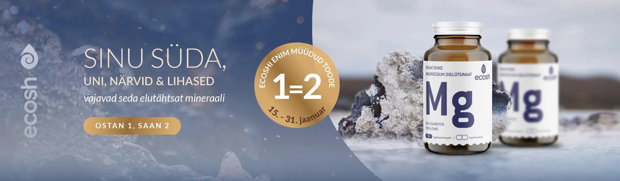 Liitu Ecoshi uudiskirjaga! Toeta oma tervist ja saa esimene tellimus 10% soodsamalt! Soovin liituda Ecoshi Boonusprogramm Ecoshi püsikliendina kogud igalt ostult 5% boonust oma kontole!Kasuta kogutud boonust e-poes maksmisel. Loo konto Logi sisse Osta 100 € eest ja säästa -10% *Kupong ei kehti toodetele millel on juba allahindlus! Sooduskood immuunsus10 E-poodi Osta 150 € eest ja säästa -15% *Kupong ei kehti toodetele millel on juba allahindlus! Sooduskood immuunsus15 E-poodi