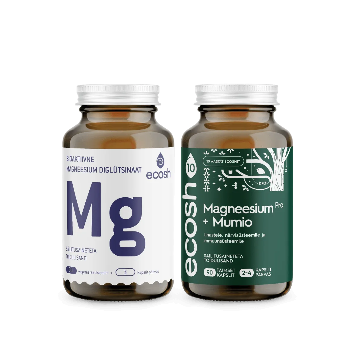 Magneesiumi PRO kombo – Magneesium glütsinaat (90 kapslit) ja Magneesium PRO+Mumio (90 kapslit)