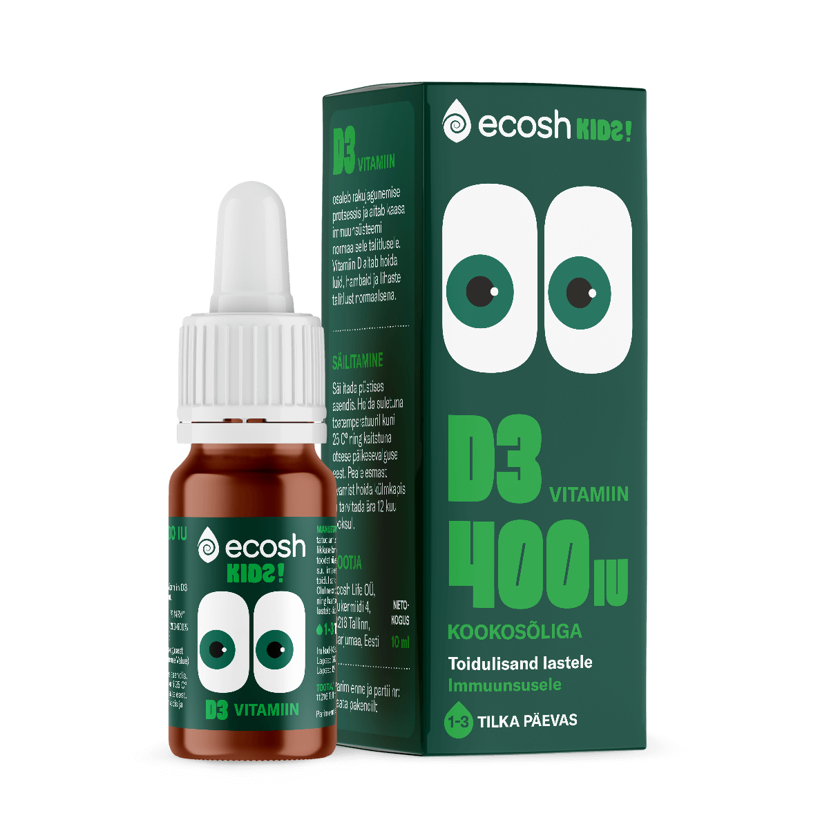 Kogus tootes: 10 ml pudel, 1 tilk on 400 IU