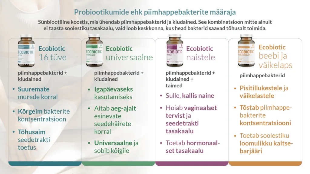 Ecobiotic on piimhappebakterite sari, mis toetab soolestikku kui keha üht olulisemat tasakaalukeskust.